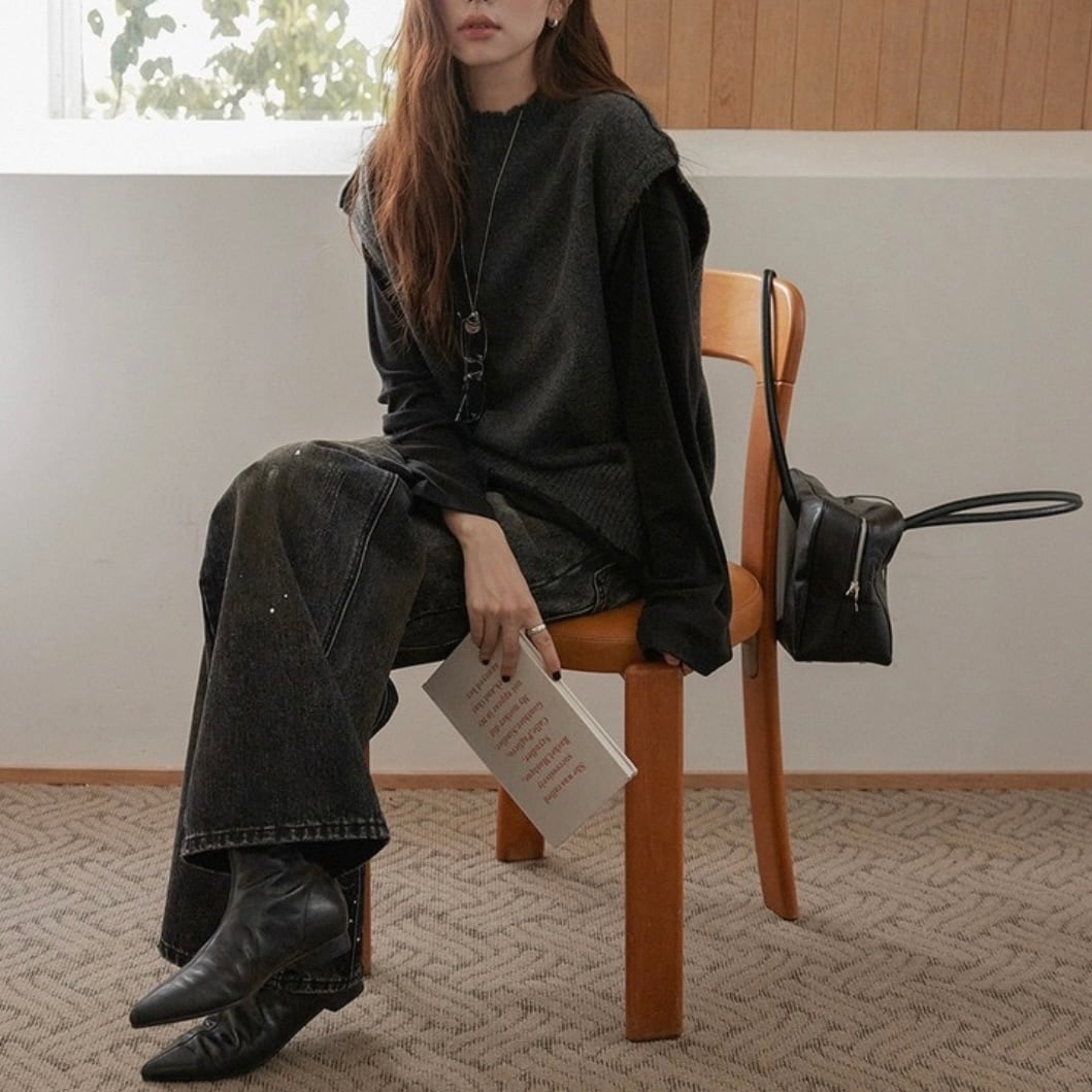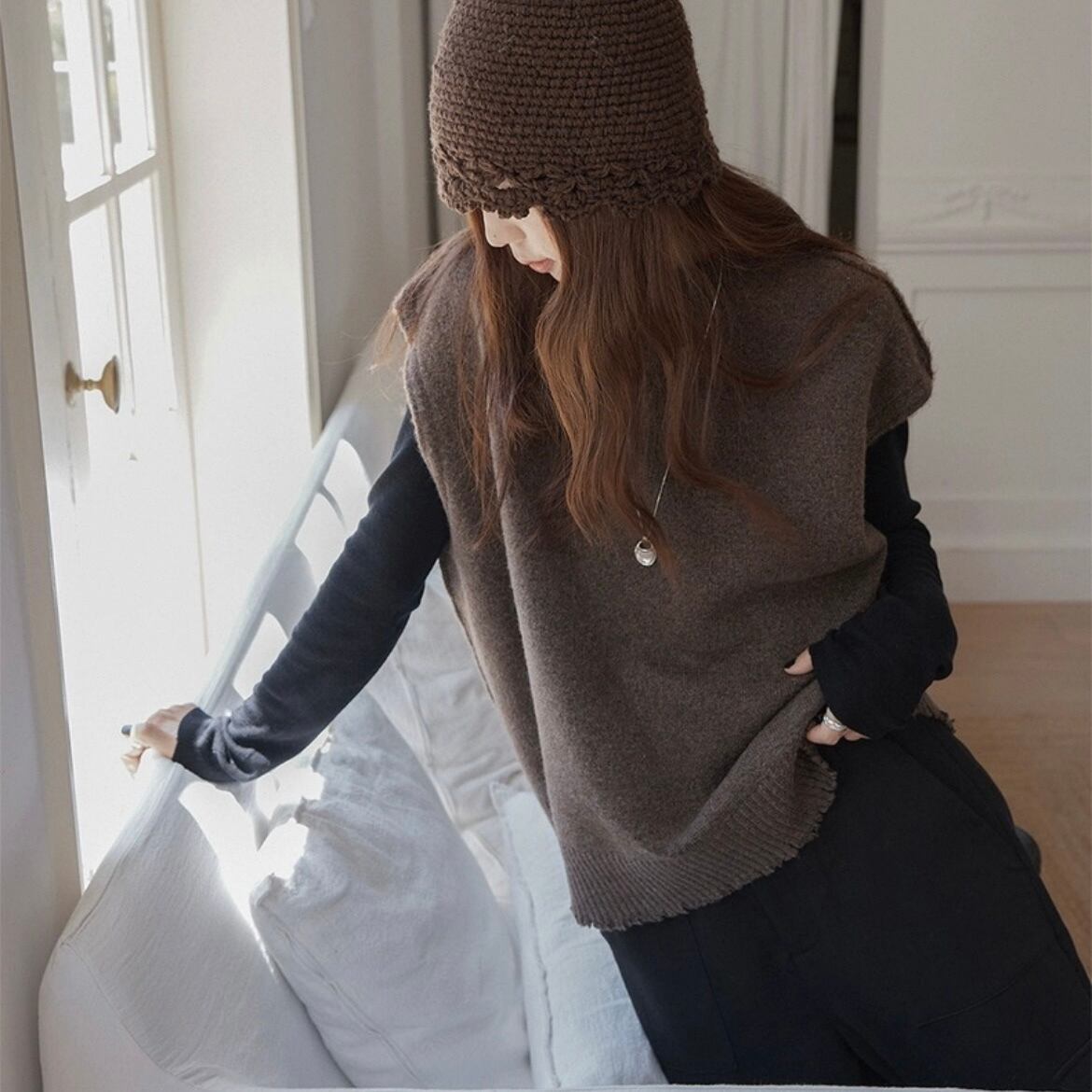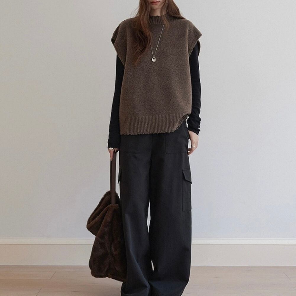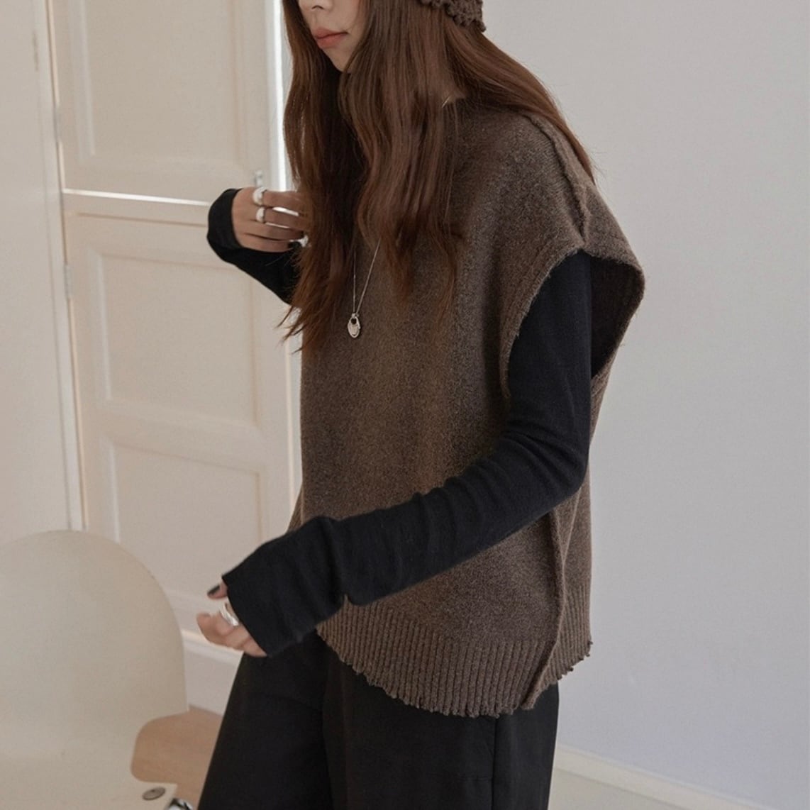 ゆったりとしたシルエットで、ブラウスやカットソーの上から重ねるだけで、こなれた印象に。