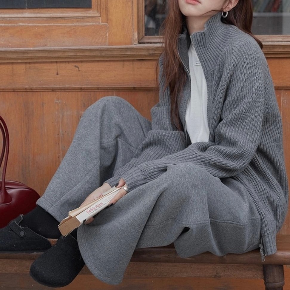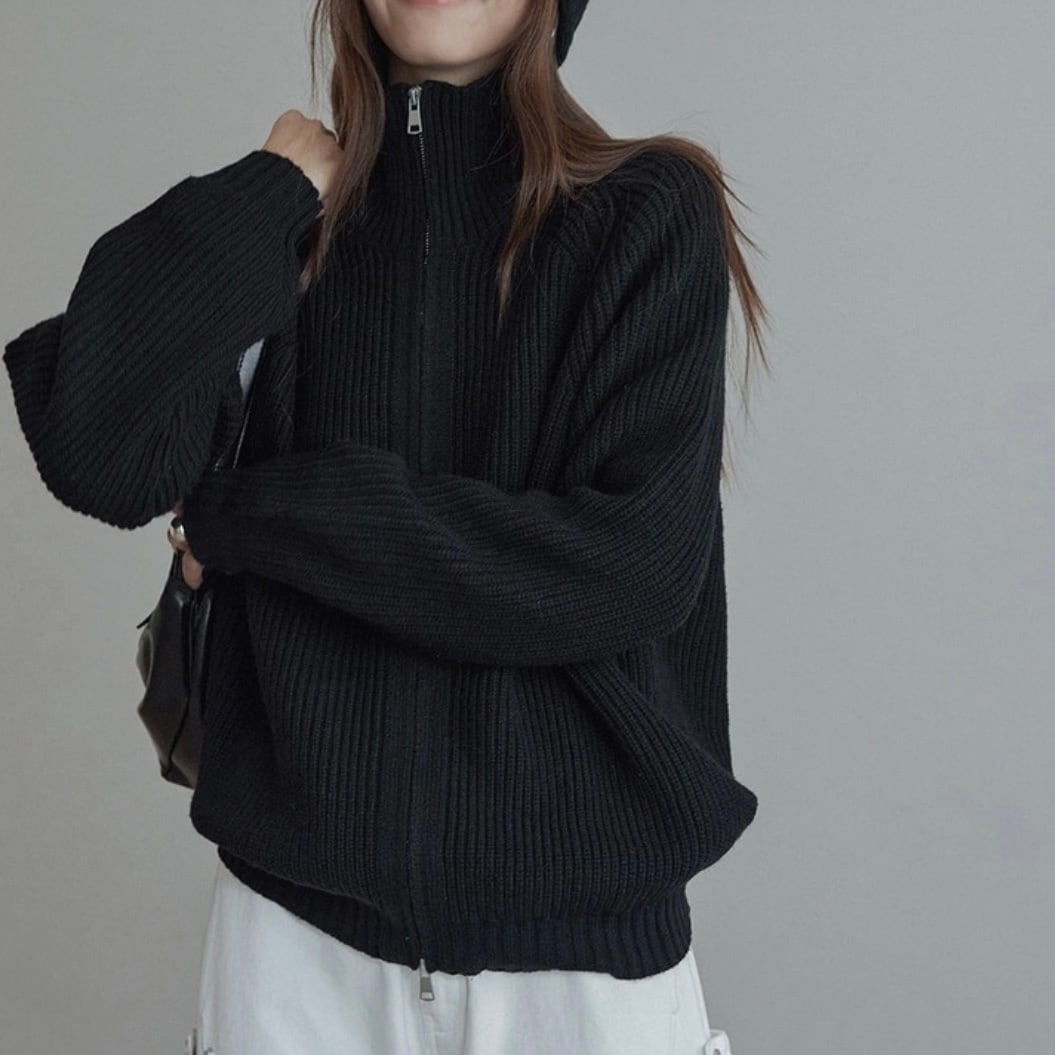 ジップアップ ミドル丈 ニット カーディガン ◆3col SA10046