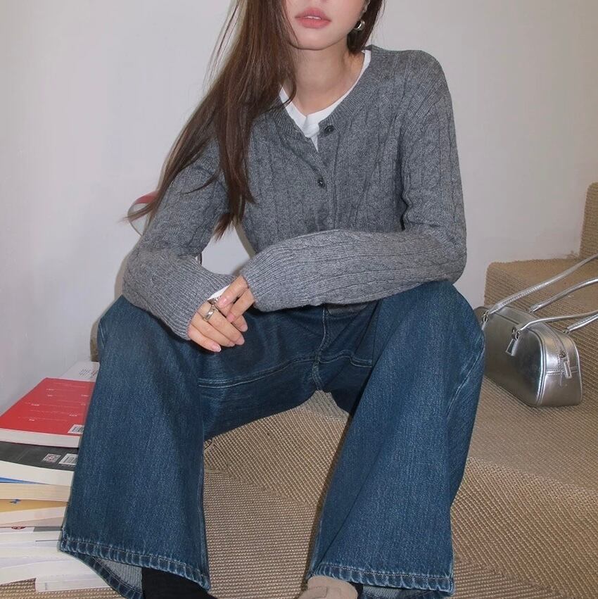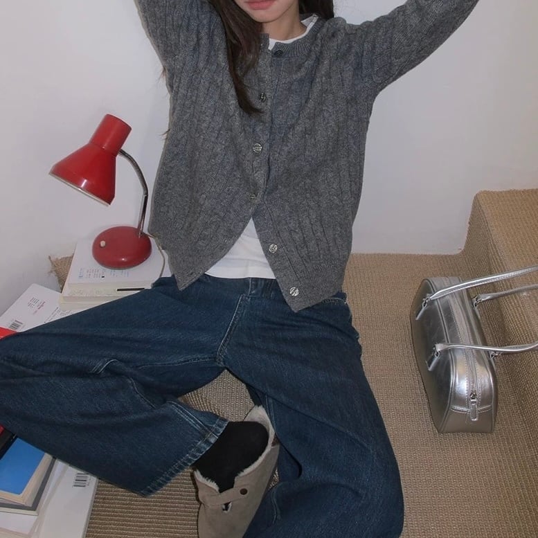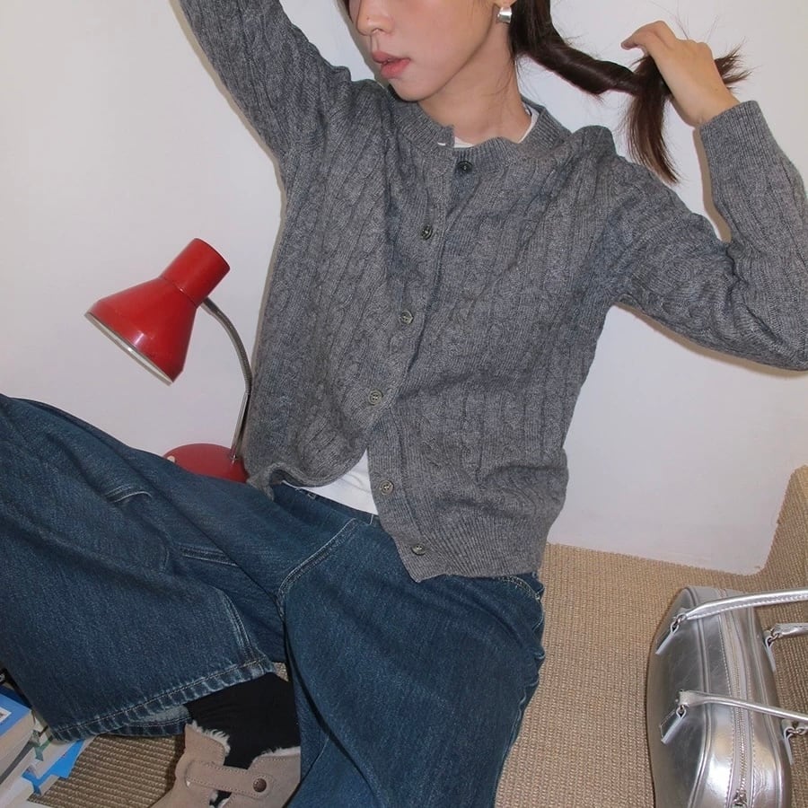 ケーブル編み 長袖 クロップド丈 ニットカーディガン SA10025