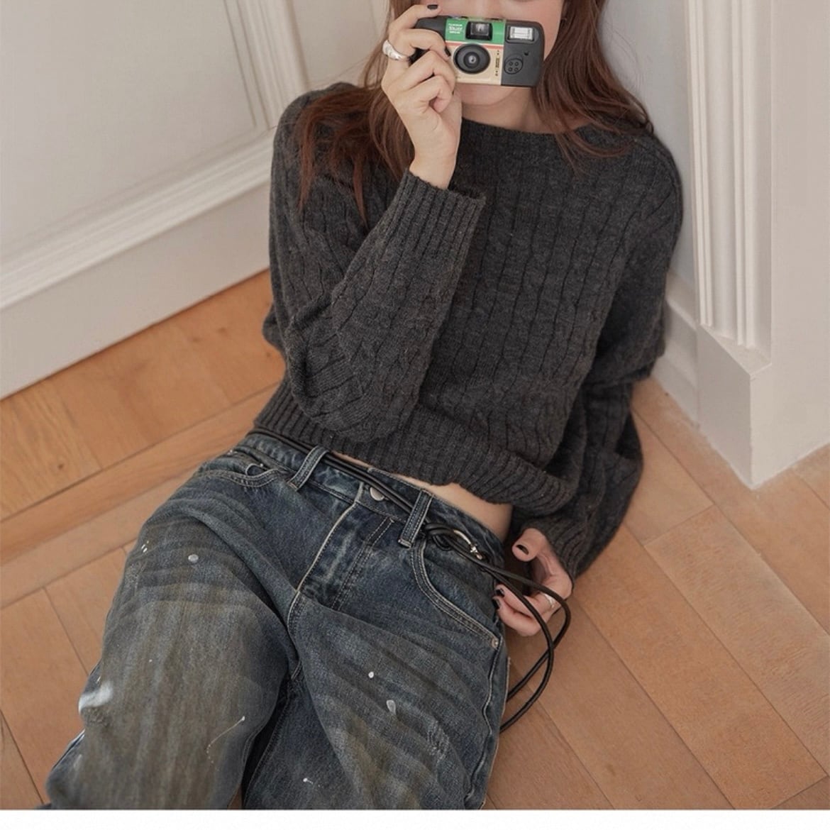 一枚でトレンドライクな着こなしが叶う、ケーブル編みニットプルオーバー。