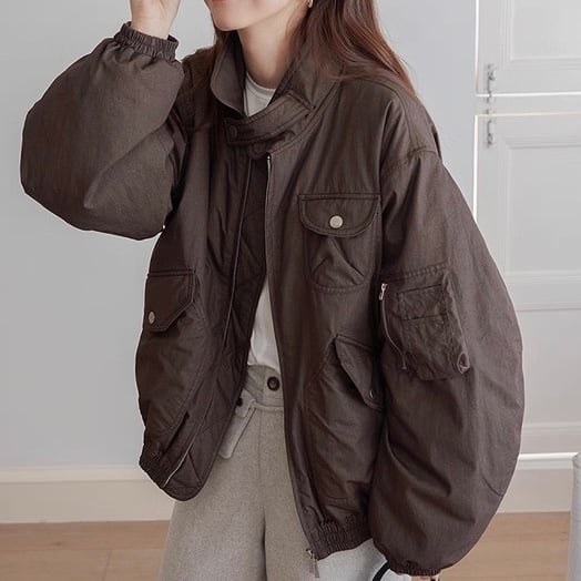 スタンドカラーのデザインが首元をすっきりと見せてくれます。