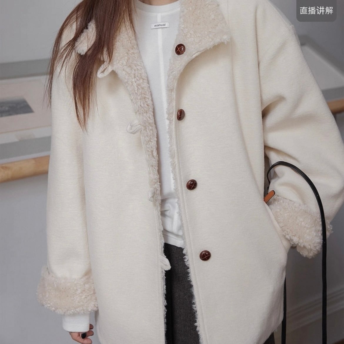 襟と袖口のボアがアクセントになったヒップ丈ジャケットです。