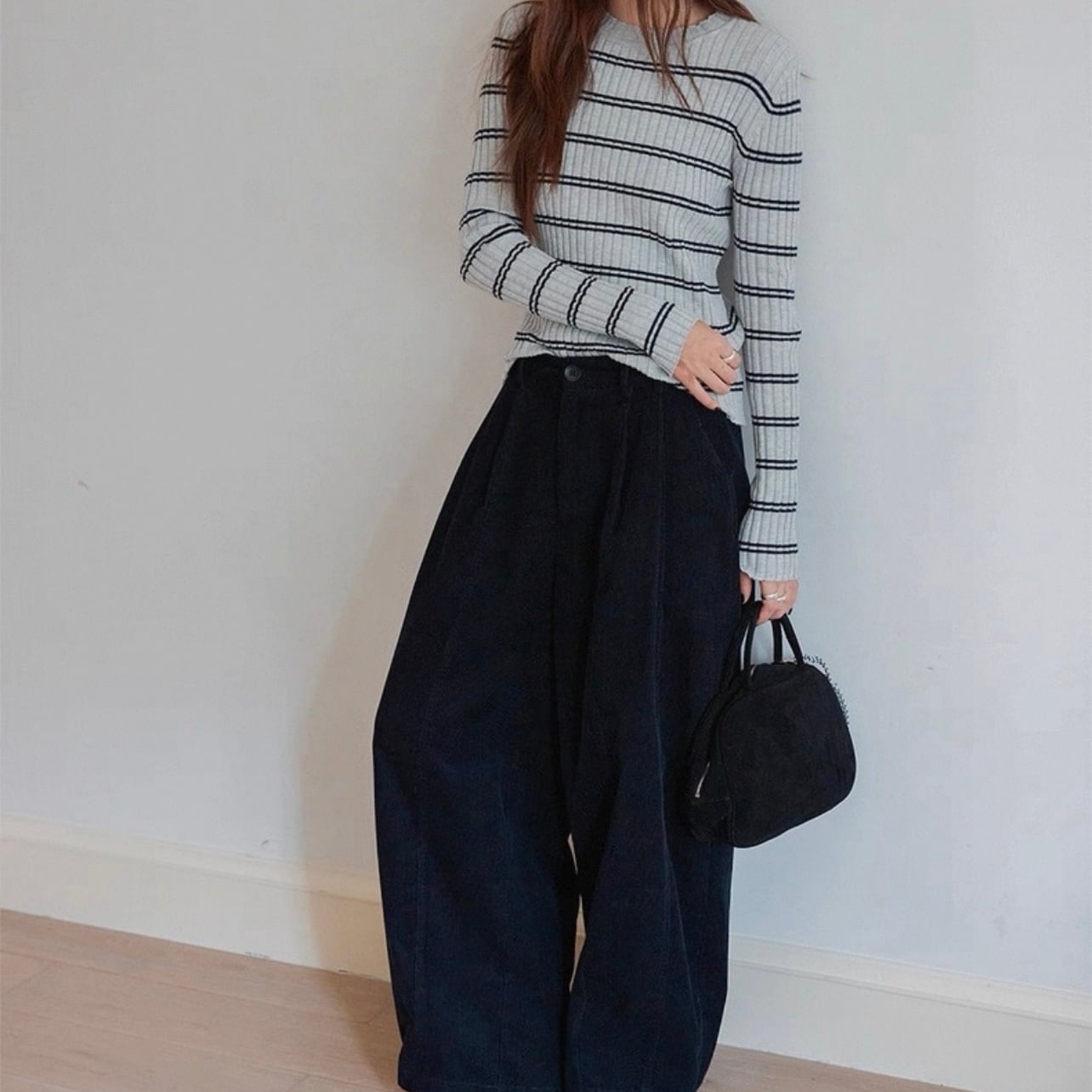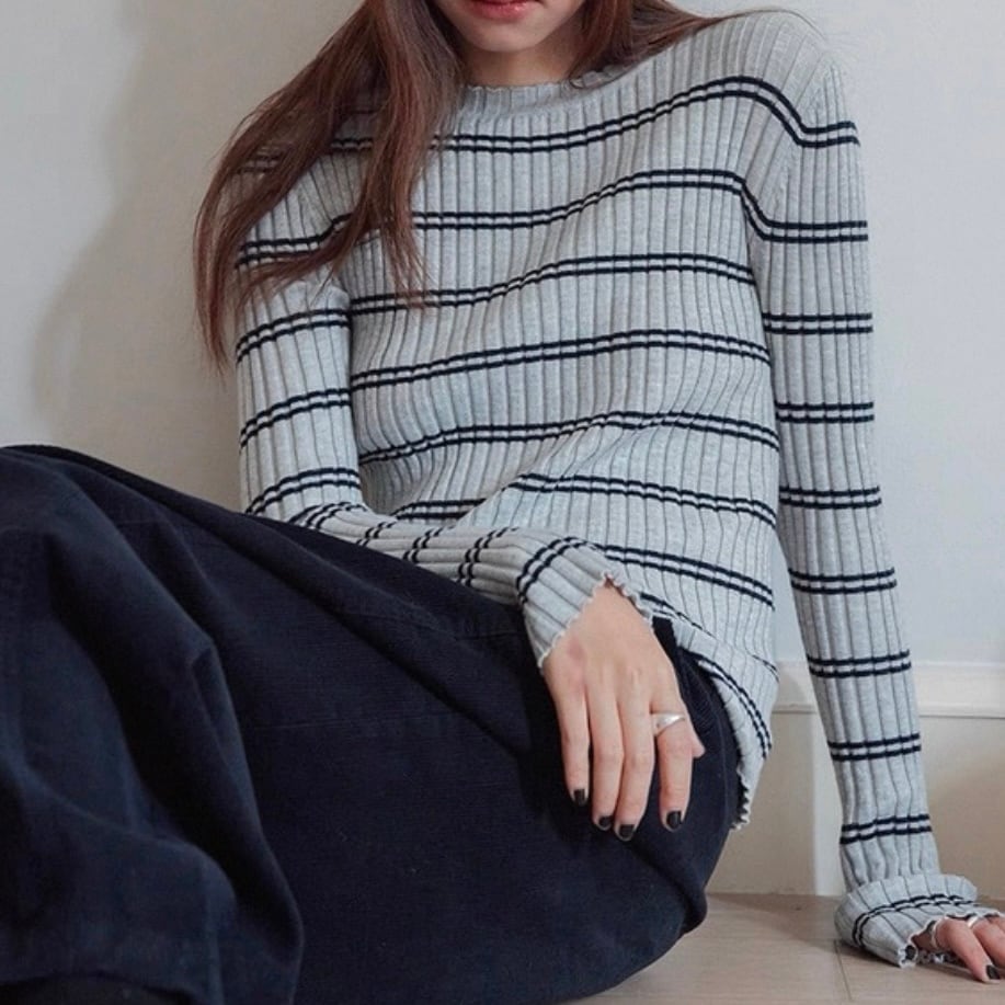 ボーダー柄 リブ編み ニット ◆2col SA10067
