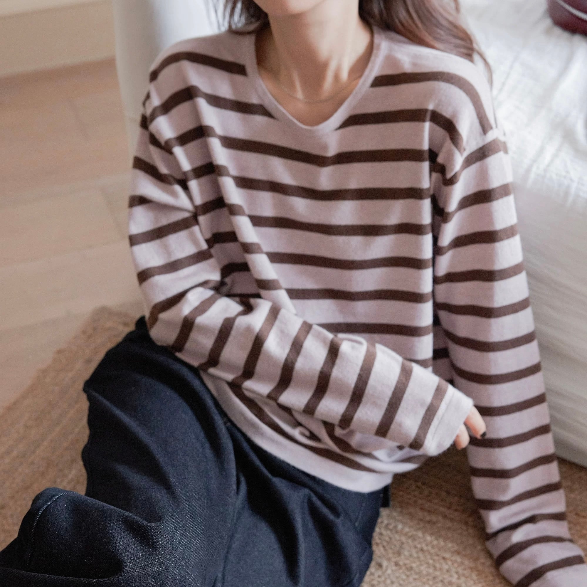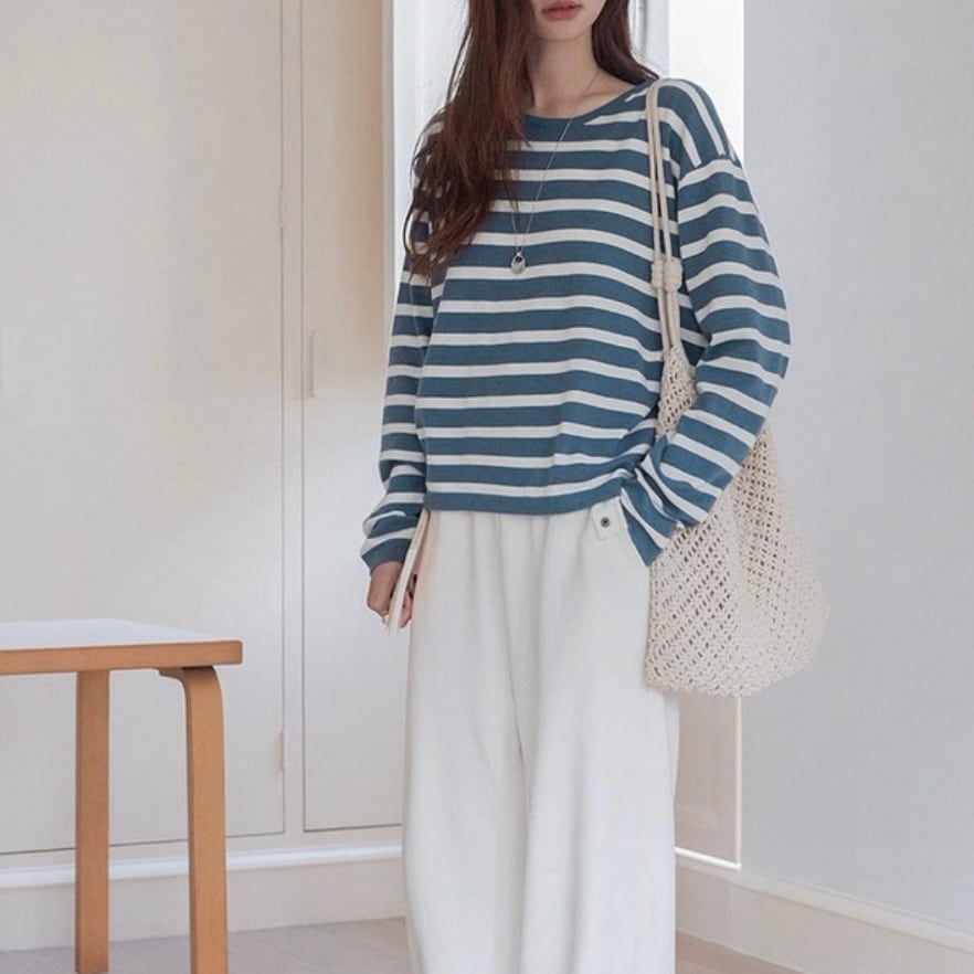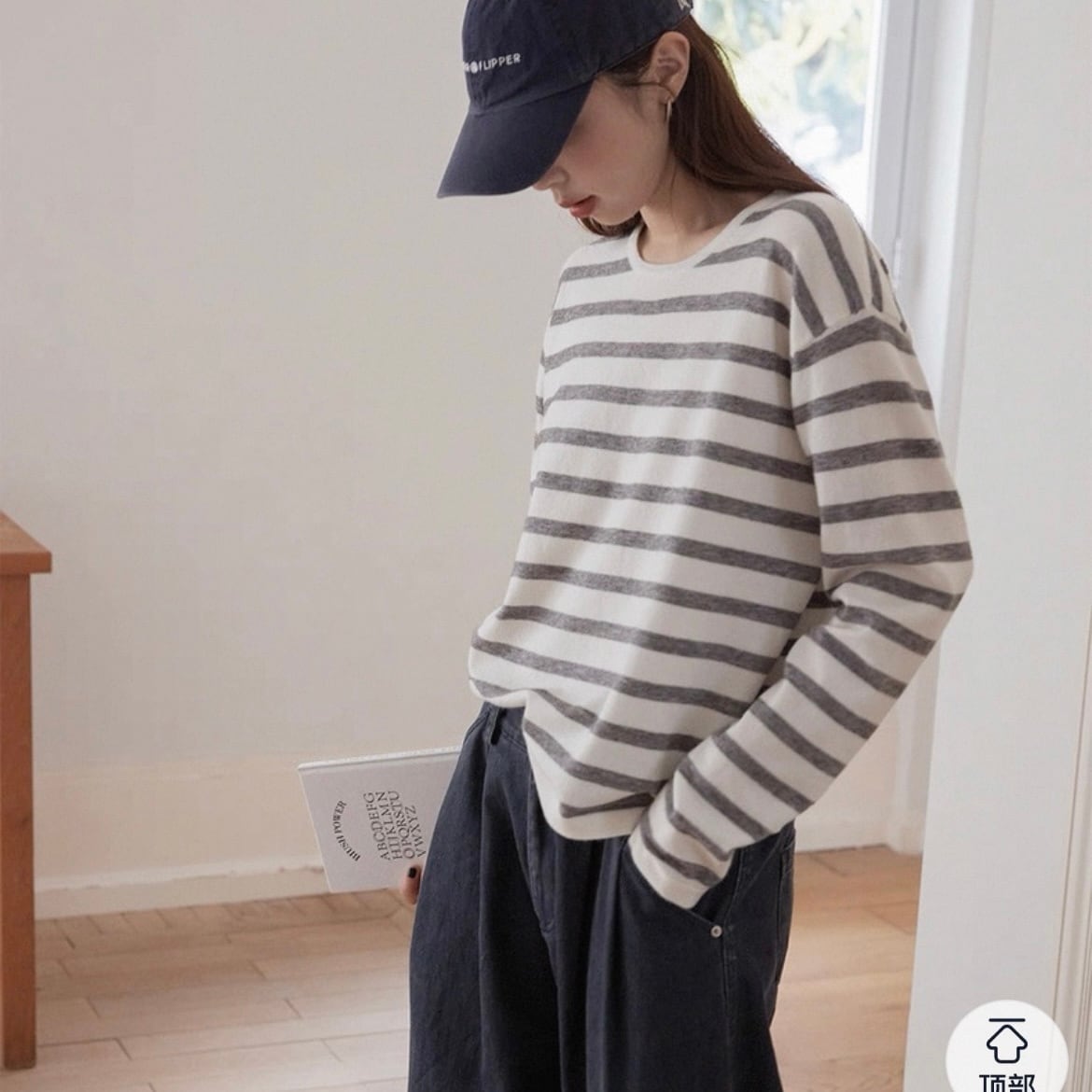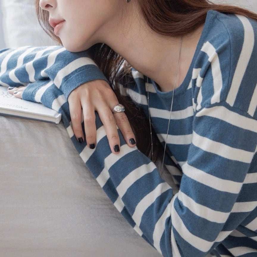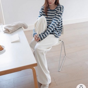 ボーダー柄 長袖 ヒップ丈 ニット ◆3col SA10060