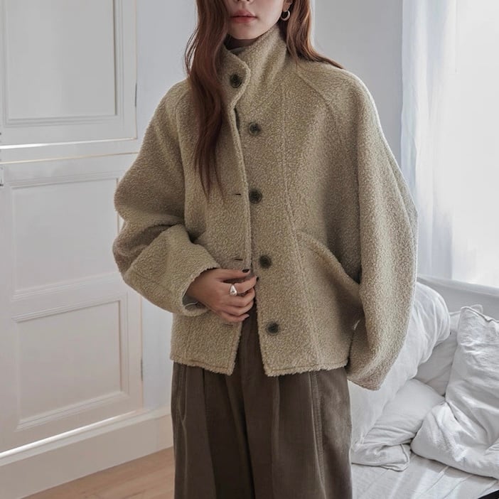 ボタンフロント ヒップ丈 ドロップショルダー ジャケット ◆2col SA10080