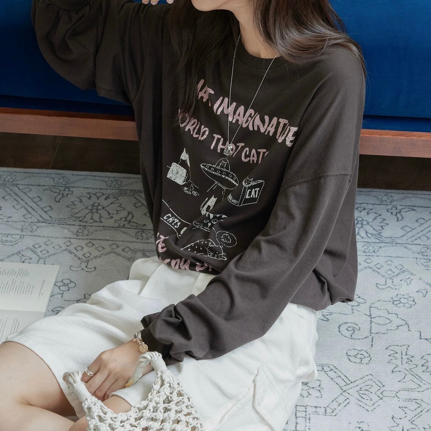 長袖 ヒップ丈 グラフィック Tシャツ ◆2col SA10085