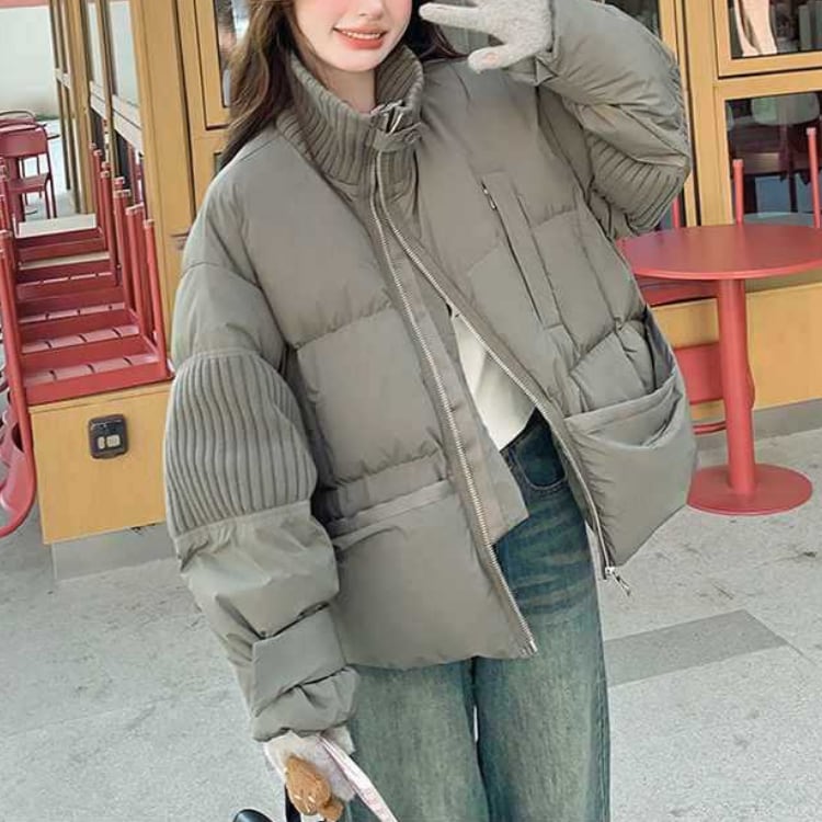 異素材ミックスが目を引く、ジップアップダウンジャケット。