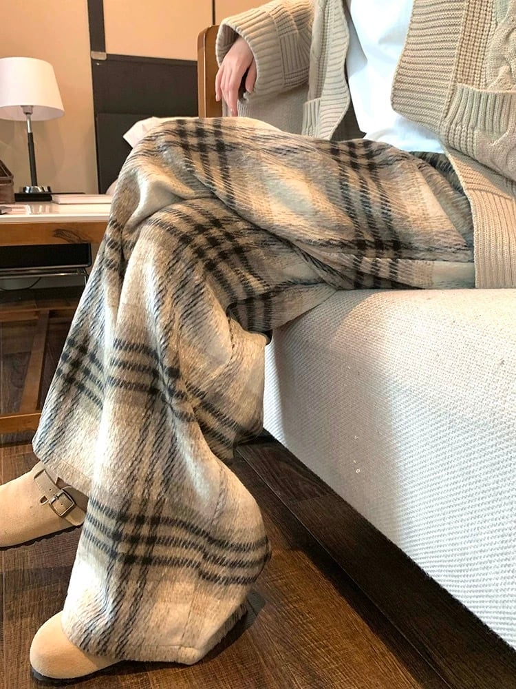 チェック柄 ワイド ウエストゴム イージーパンツ SA10239
