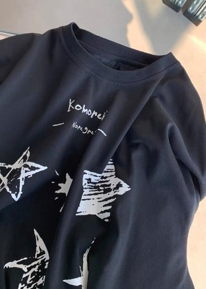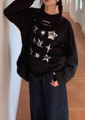 星柄のプリントが目を引く長袖Tシャツ。