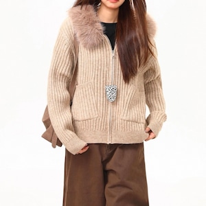 リブ編み フルジップ ニットカーディガン ◆2col SA9868