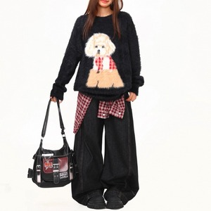 犬プリント オーバーサイズ ニット ◆2col SA9873