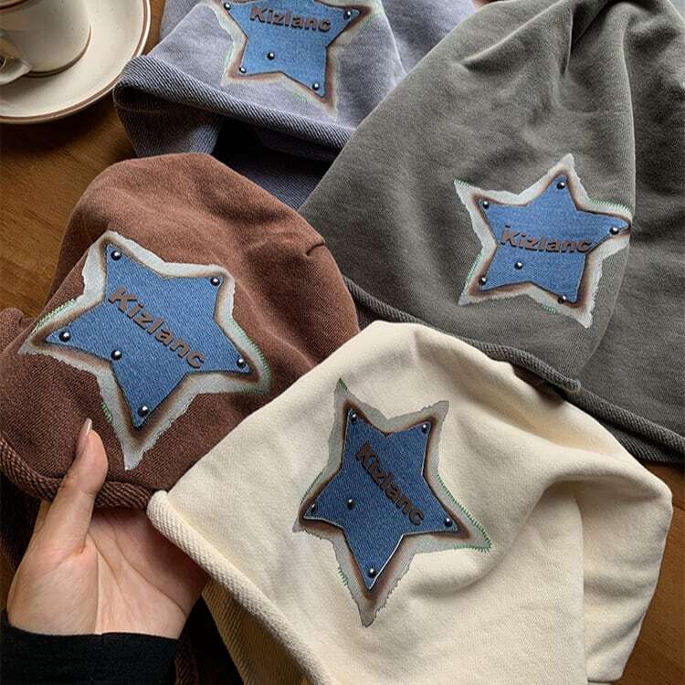ニット スターパッチ ビーニー キャップ ◆4col S1066