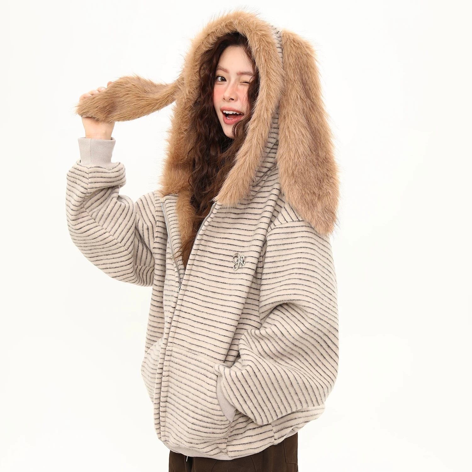 フード付き ボーダー柄 ヒップ丈 ジップアップ ジャケット ◆3col S1002