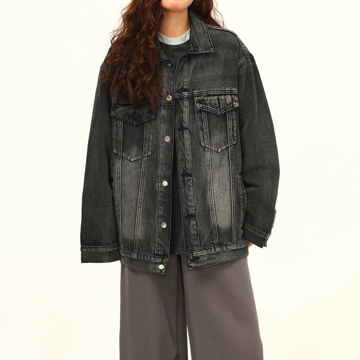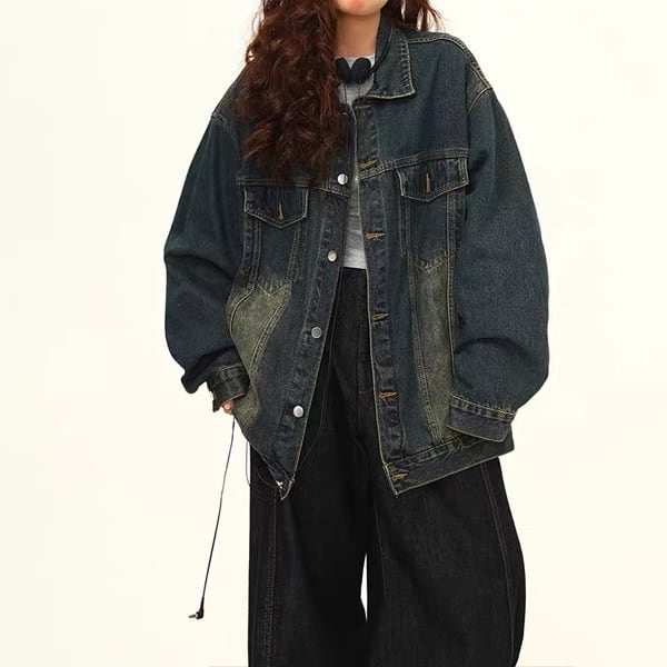 パッチポケット フロントボタン オーバーサイズ ヒップ丈 デニムジャケット ◆2col S1008