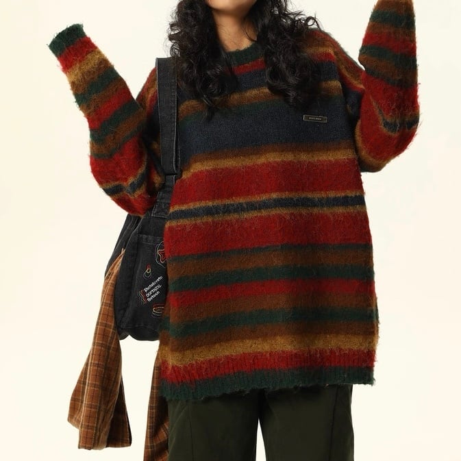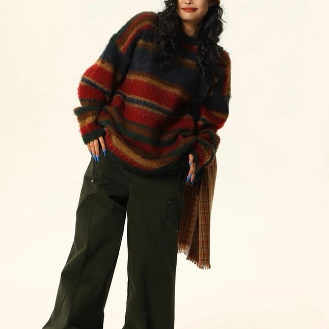 ボーダー柄 長袖 オーバーサイズ ニット S1019