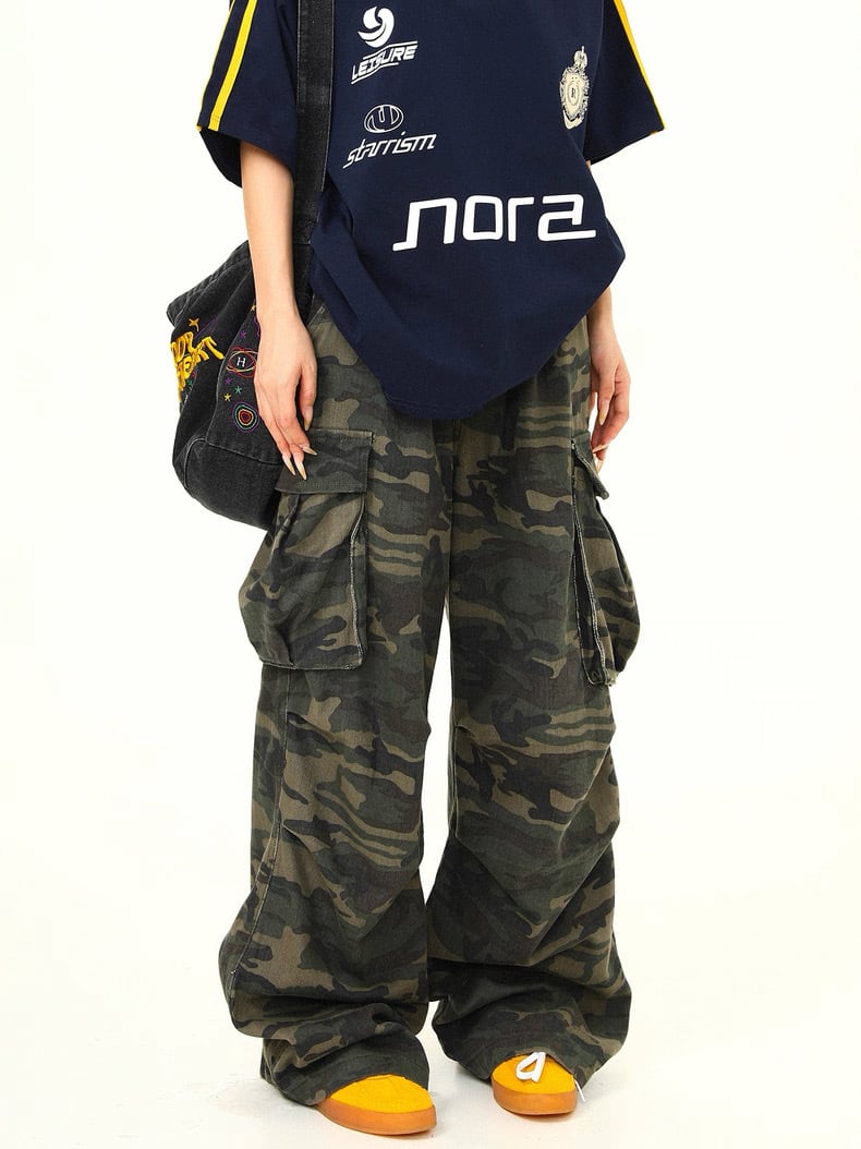 迷彩 カーゴ ワイドストレート フルレングス パンツ S1011