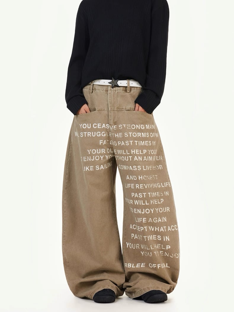 プリント入り ワイドレッグ フルレングス パンツ S1067