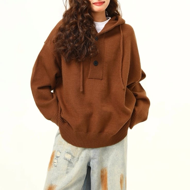 ボタンフロント オーバーサイズ 長袖 ニット ◆3col S1025