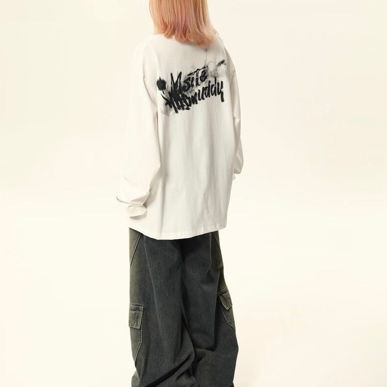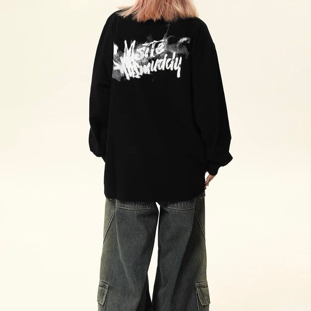 バックプリント ヒップ丈 長袖 Tシャツ ◆2col S1030